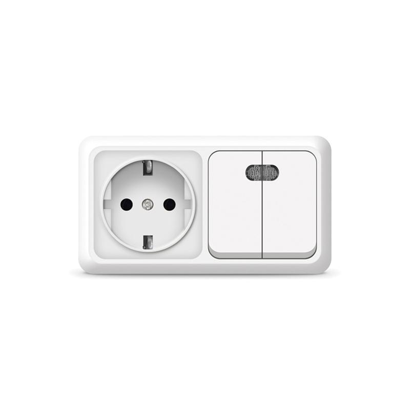 Корпус представляет собой форму из пластика, белого цвета. Контактная группа изделий изготовлена из латуни. Монтируется горизонтально, на глубину 48 мм, на поверхность стены. Рекомендованы для жилых помещений и административных зданий.
