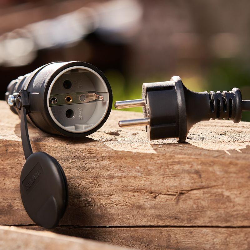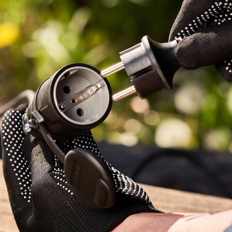Степень защиты IP44 позволяет использовать розетку для организации электропитания под открытым небом, а в дождь – под навесом. Не допускается погружение в воду.