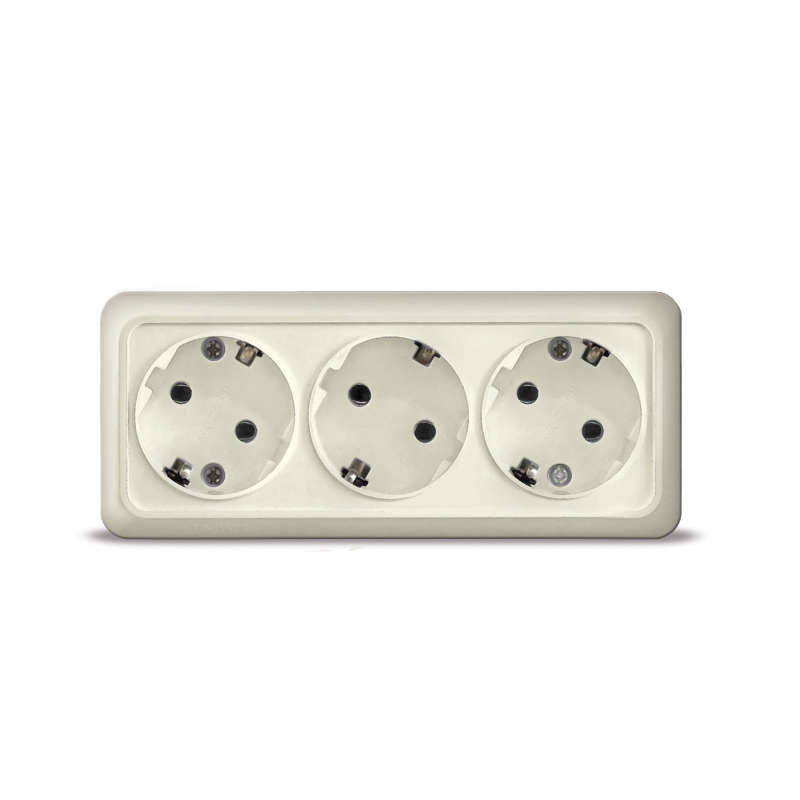 Корпус представляет собой форму из пластика, бежевого цвета. Контактная группа изделий изготовлена из латуни.