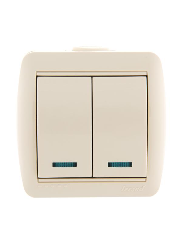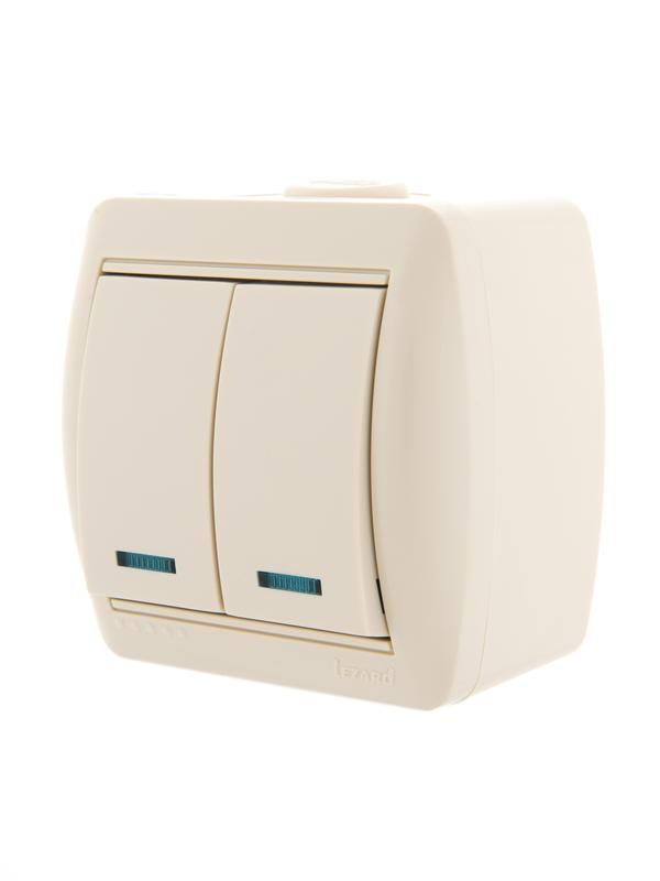 Выключатель 2-клавишный это двухпозиционный коммутационный аппарат с замыкающими (нормально-разомкнутыми) контактами, предназначенный для работы в сетях с напряжением до 1000 вольт, не предназначенный для отключения токов короткого замыкания, без специальных устройств дугогашения, местного управления, с ручным приводом.