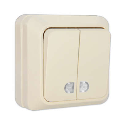 Выключатель 2-клавишный это двухпозиционный коммутационный аппарат с замыкающими (нормально-разомкнутыми) контактами, предназначенный для работы в сетях с напряжением до 1000 вольт, не предназначенный для отключения токов короткого замыкания, без специальных устройств дугогашения, местного управления, с ручным приводом.