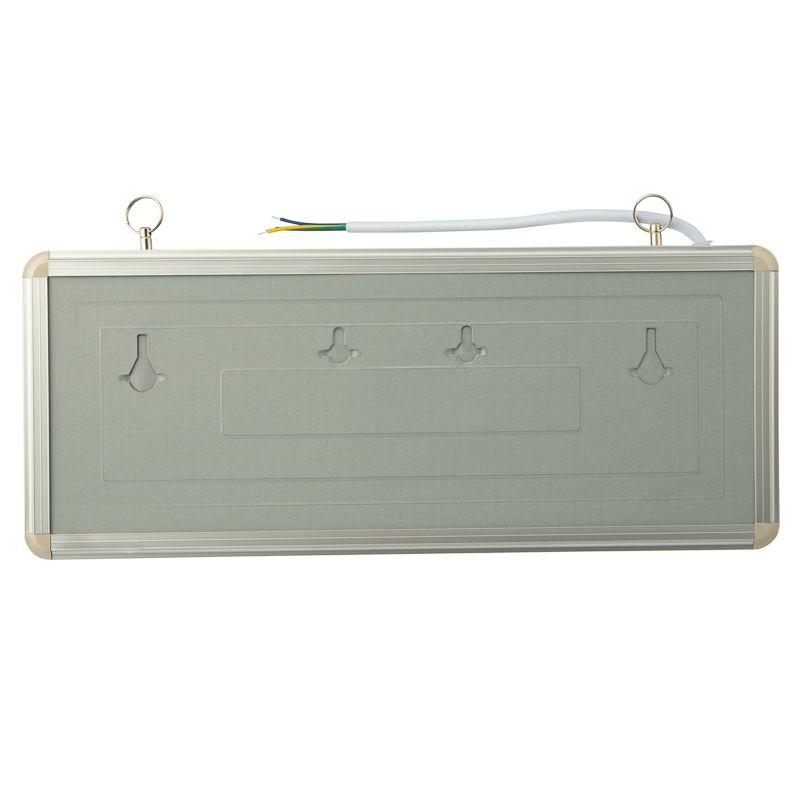 Источником света в светильнике является светодиодная линейка, использование которой дает преимущество в сравнении с применяемыми в настоящее время люминесцентными лампами и лампами накаливания. Светильник имеет два варианта крепления: настенное и потолочное. Световые указатели имеют встроенный аккумулятор и сохраняют работоспособность при отсутствии напряжения в течение 90 минут.